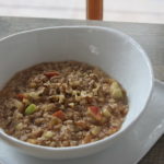 Place all ingredients (except the walnuts) into a pot and bring to a boil. Simmer for 5 minutes. Serve with toasted walnuts.
