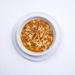 Ladle 8 oz. into a serving bowl. Garnish each bowl of soup with 1 Tbsp. of tortilla strips and 1 Tbsp of cotija cheese.