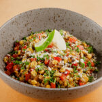 Place into serving bowl and garnish with grated cotija cheese.
