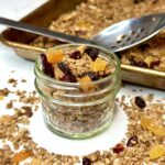 Pre-heat the oven to 325F degrees. In a bowl combine oil, maple syrup, vanilla, cinnamon, nutmeg and salt.