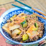 Roughly chop kimchi. Toss soba noodles with dressing, kimchi and cucumber until evenly mixed. Serve.