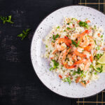 To serve, divide the bulgur mixture among 4 bowls and top each with about 3 oz of shrimp.